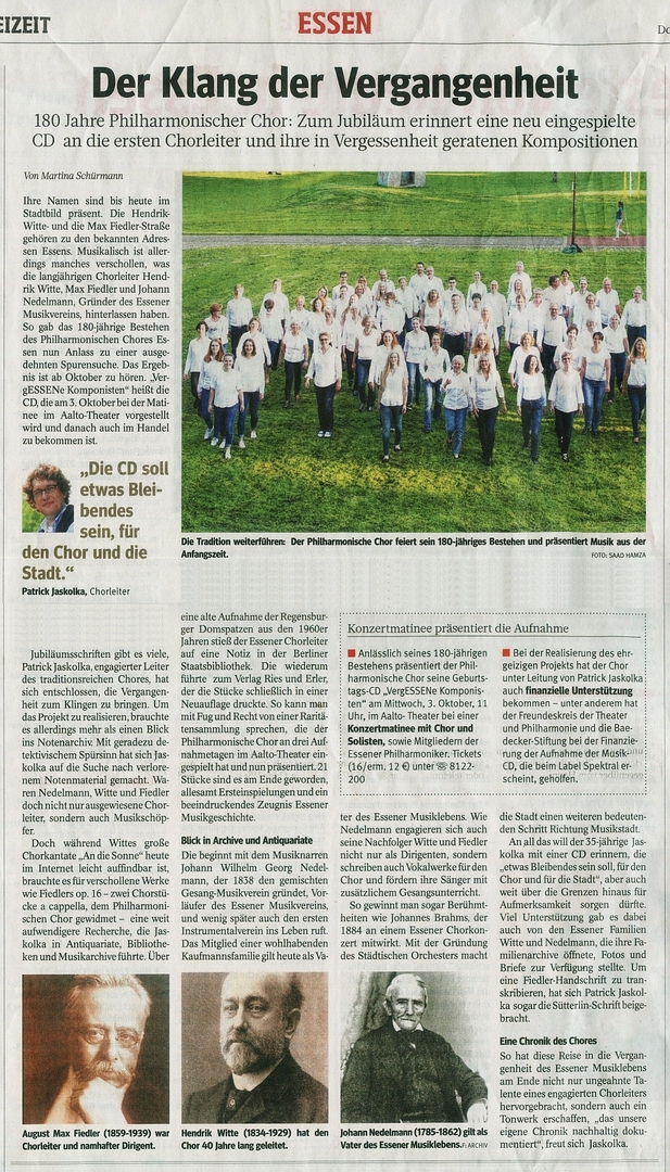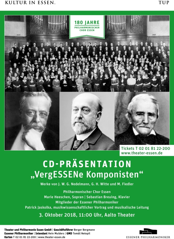 Zu seinem 180jährigen Jubiläum widmet sich der Philharmonische Chor den Gründern des Chores und des Essener Musiklebens